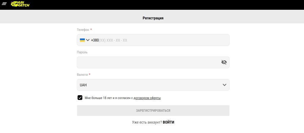 Процесс регистрации на официальном сайте Parimatch Украина занимает две минуты. Нужен номер телефона, подтверждение через SMS и заполнение базовых данных. После этого можно сразу делать ставки на БК. Полная верификация документами требуется только перед выводом средств.